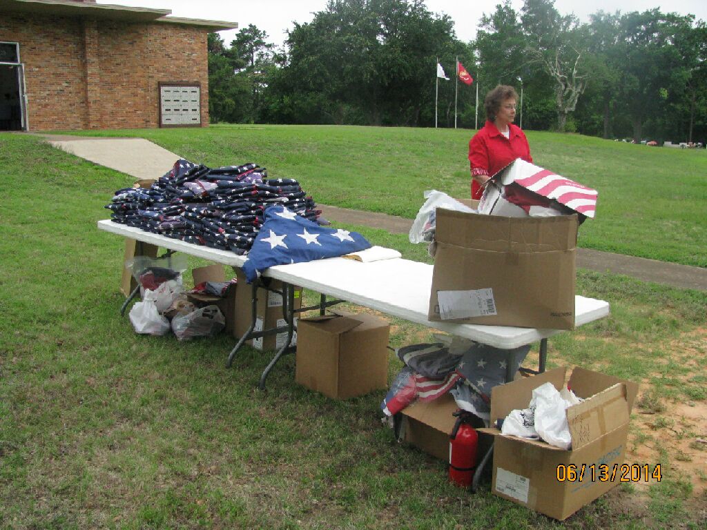 Flags ready for retirement and some for next year, under table.