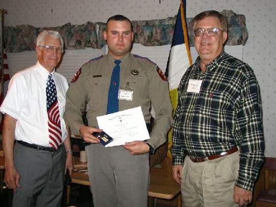 Preston then called Tom Gann to the front. Tom relayed a story about the actions of State Trooper Chris Harrison. Tom was on a jury involving this troopers actions. President Preston then awarded Trooper Chris Harrison with a Certificate of Commendation and a medal.