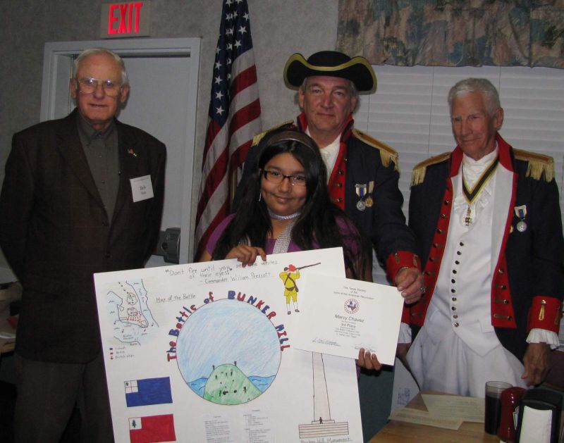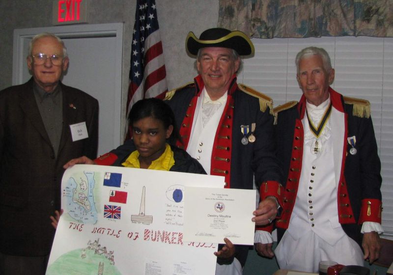 At this time Naranjo talked briefly about the Battle of Bunker Hill and then called the Poster Contest winners forward to receive their check, Certificate of Appreciation and recognition. Pineywoods Academy had 19 participants and St. Cyprian's had one.