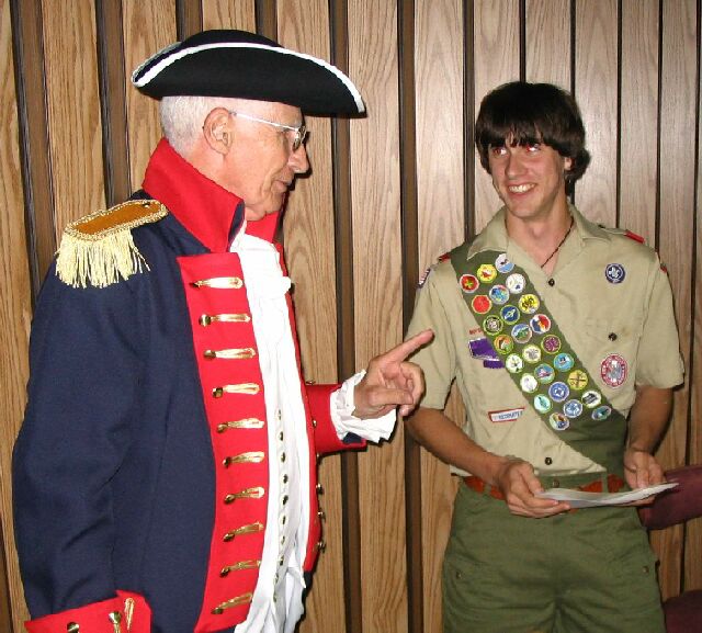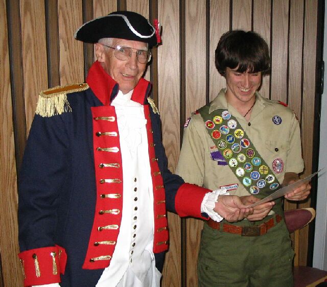 Since Eagle Scout Chairman, J. Neal Naranjo had not arrived Preston introduced Tom Gann who gave the talk about the 'History of the Lt. Nathan Gann Chapter'. Tom talked about Ignatious Nathan Gann, his 19 children by 4 wives and his role in the Revolutionary War, in particular the battle of King's Mountain. There were 18 members at the organizational meeting and 2 more immediately after were also considered charter members. Of these 20 members, 12 were descendants of Ignatious Nathan Gann. There was discussion about where Ignatious originated and it was Washington County which included most if not all of Tennessee. Jonesboro was mentioned as home.