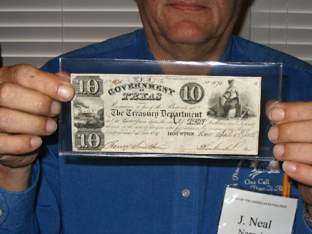 At this time Preston introduced the speaker, Compatriot Dr. Jennings Neal Naranjo who talked about United States Money from Colonial Times to the Present. Dr. Naranjo is recognized as one of the top 5 authorities (World Wide) on United States money. The talk was very informative and interesting and kept everyone glued to their seats for an hour and 15 minutes.