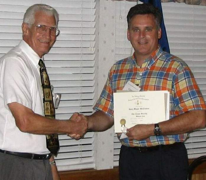 Dr. Gary McClinton receiving his SAR Membership Certificate.