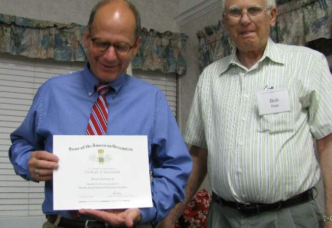 Bob Ham, VP, presenting Bruce Marchand with a Certificate of Appreciation.