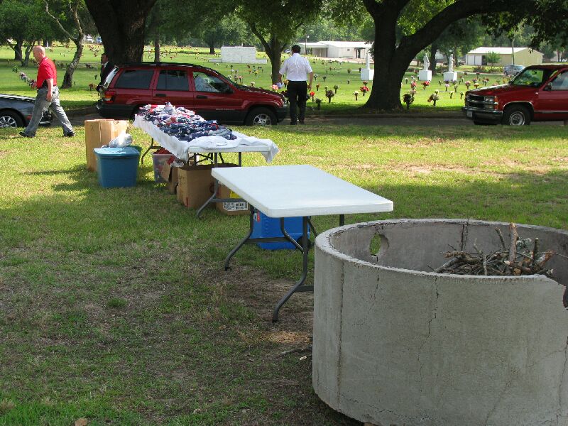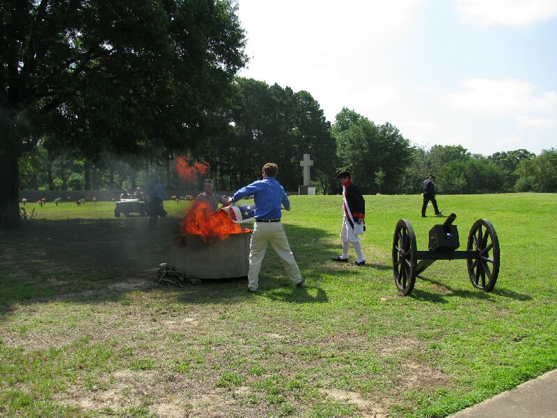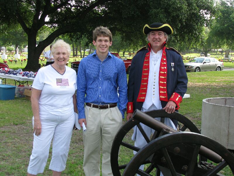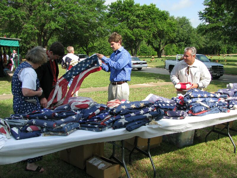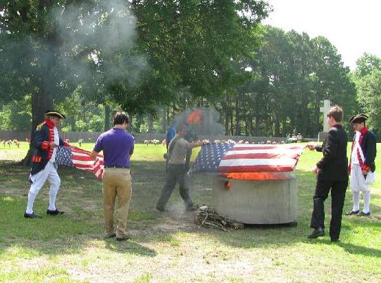 On Saturday, June 12, 2009, the Captain William Baron Chapter of the Sons of the American Revolution and the Mary Tyler Chapter of the Daughters of the American Revolution held a flag retirement ceremony at the Tyler Memorial Cemetery in Tyler, TX. Fred Preston, President of the Lt. Nathan Gann Chapter of SAR in Lufkin, Neal Naranjo, VP, and J. Neal Naranjo II also of the Lt. Nathan Gann Chapter also participated. Preston took approximately 45 flags from the Lufkin area and the total to be retired was 300. Neal Naranjo and his son helped fold some of the flags and helped in the burning. Neal and Fred Preston both participated in the posting of the colors.