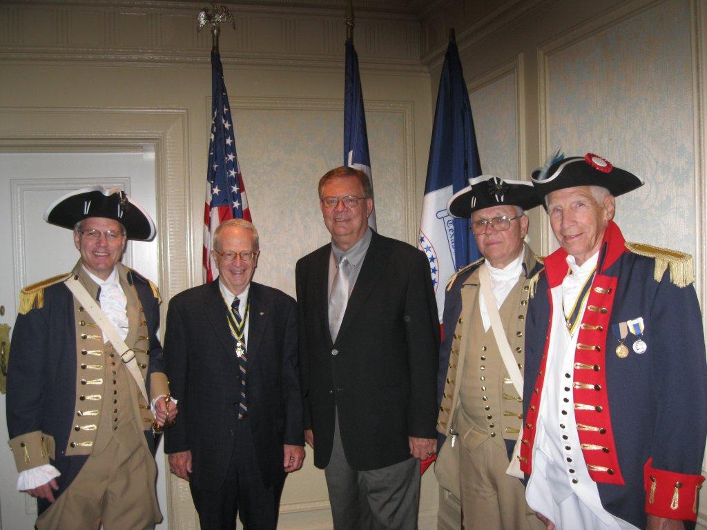 Meeting of the Fredonia Chapter of the Sons of the American Revolution at the Fredonia Hotel on May 12, 2011. Tom Gann, Sgt. at Arms of the Lt. Nathan Gann Chapter in Lufkin was the speaker. Tom talked about Chief John Bowles, a Cherokee Indian Chief and his role in the Revolutionary War and also his connection with Sam Houston. Pictured from left to right: 1st VP Daniel Rogers, Chapter President Farrar Bentley, Tom Gann, Dist. 10 VP Mike Everheart and Fred Preston, past president of the Lt. Nathan Gann Chapter.
