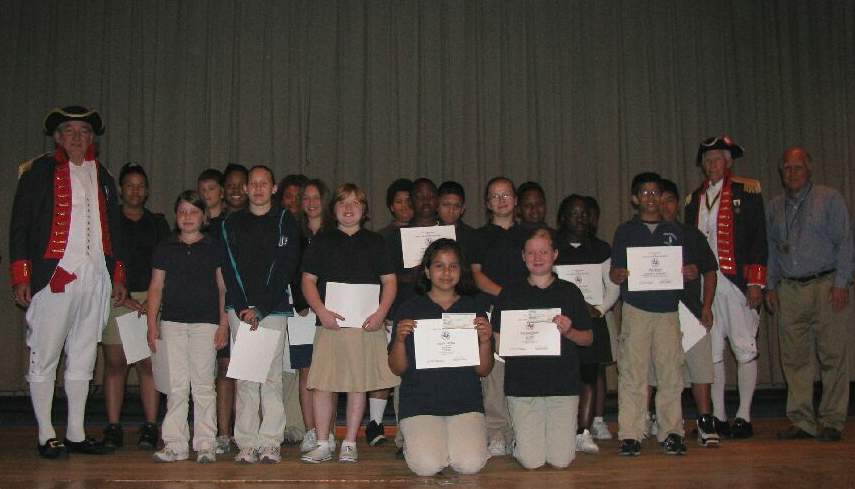 On Wednesday May 27th, Neal Naranjo, VP, and Fred Preston, President of the Lt. Nathan Gann Chapter of the Sons of the American Revolution, presented certificates of appreciation and monetary awards to 5th grade students of Pineywoods Academy. 23 students participated in the SAR Poster Contest on 'The Midnight Ride of Paul Revere'. Each year the Sons of the American Revolution sponsors a Poster Contest for any 5th grade students. The subject is different each year. The winning local poster would go to the State competition and then National. Schools are urged to participate and the students don't need to take class room time to do the poster. They are supposed to be done individually by the student so they could be done at home. Contact Fred Preston for more information at fpreston@suddenlink.net